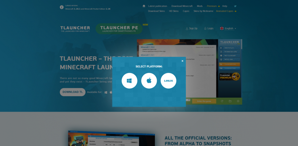 Per installare la versione completa di Minecarft, occorre prima installare il launcher. Per farlo rechiamoci sul sito ufficiale di TLauncher e clicchiamo il pulsante “Download TL“, una volta cliccato, apparirà un popup dove dovremmo selezionare il nostro sistema operativo, appena lo avremmo selezionato, partirà il download del launcher.